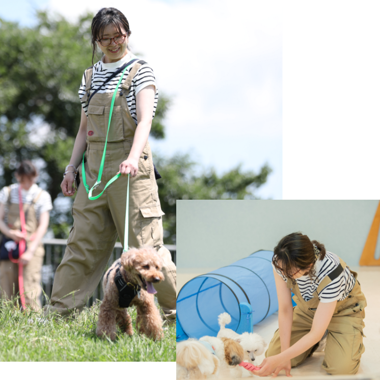 経験豊富なトレーナーによるサポート 犬の個性や成長段階に合わせて、専門トレーナーが丁寧に指導します。